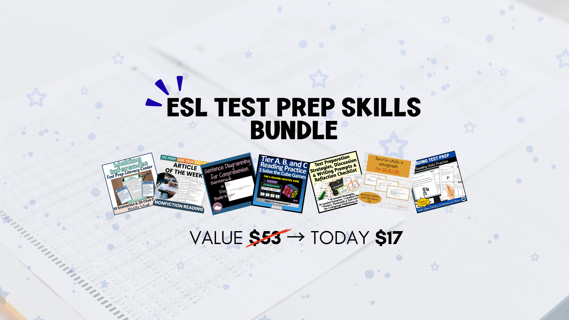 The ESL Test Prep Skills Bundle is a limited-time collaboration. Once the sale ends on March 2, this discounted bundle will no longer be available.