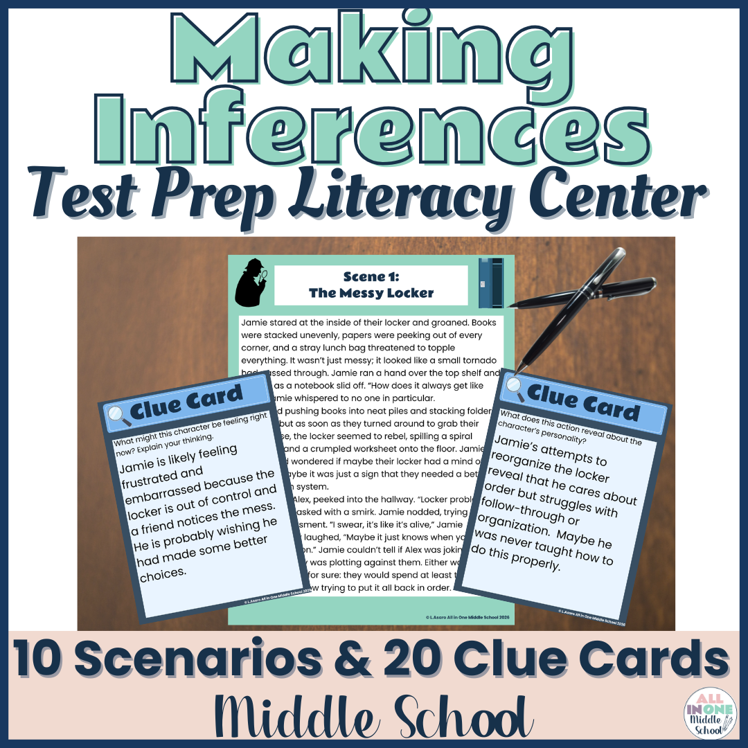 Making Inferences | ELA Test Prep Centers | Reading Passages | Clue Cards | 5-8